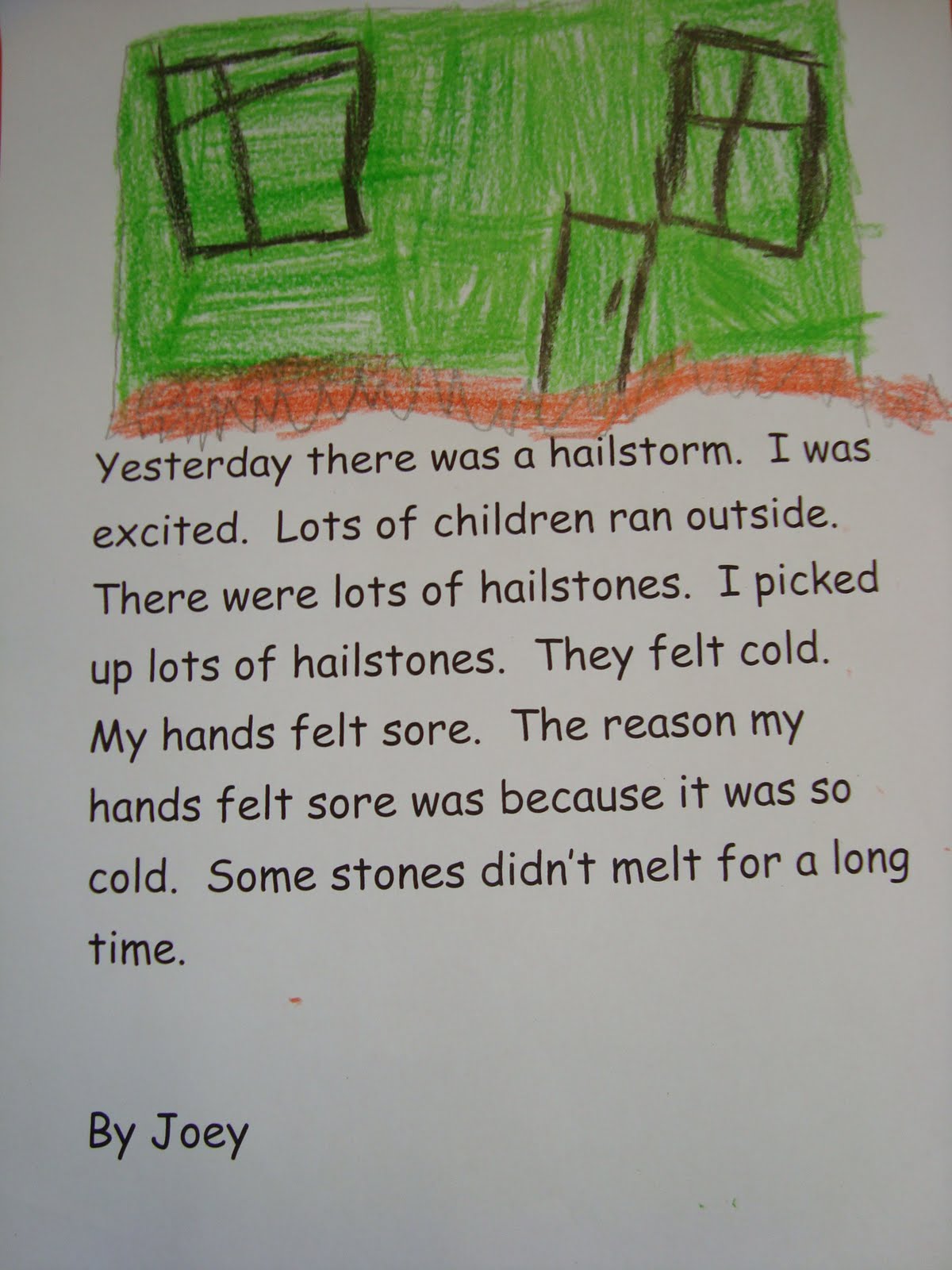 Recently there was a hailstorm while we were at school. We were all very excited about it so we wrote some great stories about the hail.